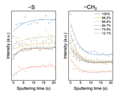 图2 −S与−CH2的TOF-SIMS深度分析结果